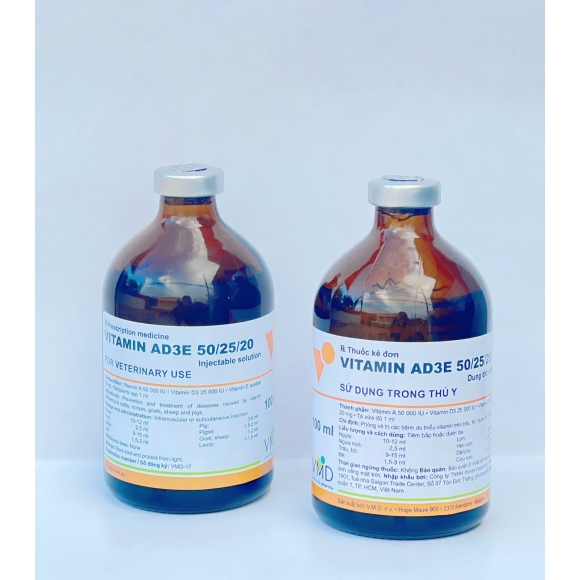 VITAMIN AD3E 50/25/20 - PHÒNG VÀ TRỊ CÁC BỆNH DO THIẾU HỤT VITAMIN TRÊN TRÂU, BÒ, NGỰA, DÊ, CỪU, LỢN